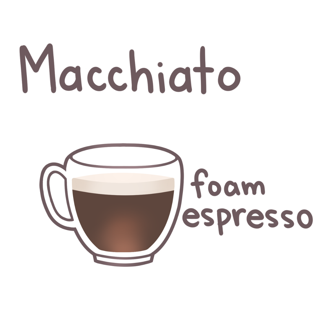 Served in a 3/4 oz cup. Brew your espresso and steam really foamy milk. With a teaspoon, add 4 teaspoons of foam to a double shot of espresso, or 2 teaspoons of foam to a single shot of