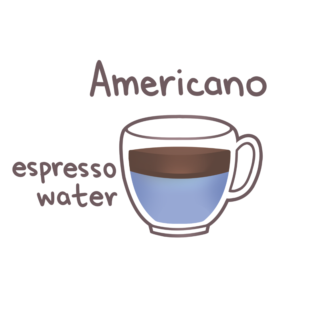 Served in an 8oz/10oz cup. Fill the cup 2/3 of the way with hot water and brew the espresso on top as to not scold the coffee. This can be served black or with hot or cold milk.