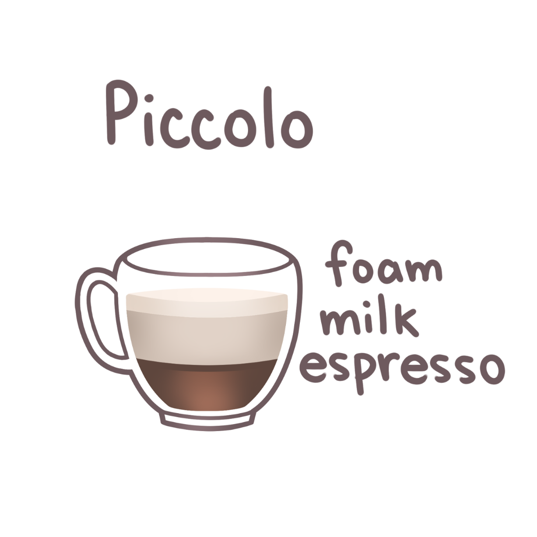 Cortados are smaller flat whites, served in a 5oz glass, usually with small layer of foam. Piccolos are served in an espresso cup (3/4 oz cup). Equal parts of steamed milk and espresso.